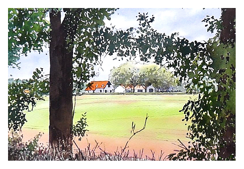 Hij is altijd op zoek naar onverwachte hoekjes en plekjes buiten de steden en probeert steeds de meest interessante compositie te vinden om uiteindelijk een boeiend onderwerp te brengen, iets waar hij nadien tevreden kan op terugblikken. Sommige van die schetsen vinden hun weg naar het grotere aquarelpapier, andere blijven een intieme combinatie “pen en aquarel”.